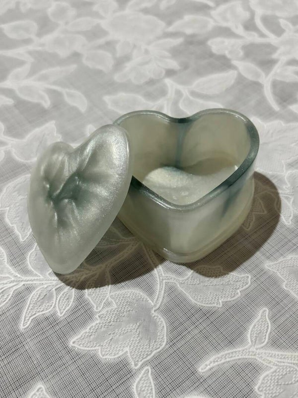 Petite boite en forme de cœur de 7 cm de diamètre et 4 cm de hauteur.